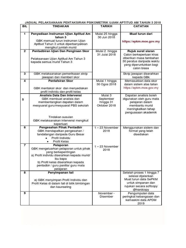 For more information and source see on this link. 1 Julai hingga 30 Ogos 2020. Guru Kaunseling Nurhaiza Che Mat Jadual Tarikh Perlaksanaan Psikometrik Tahun 2019.